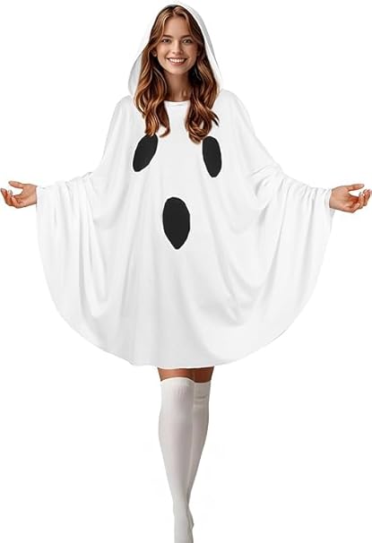 Ghost Poncho Women’s Halloween Costume – Keep it spooky yet stylish in this flowing ghost cloak! Lightweight and easy to wear, this role-playing poncho is perfect for parties, trick-or-treating, or adding a haunting touch to your Halloween night. Simple, comfy, and a little bit eerie!